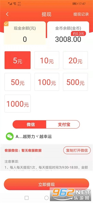 3、淘淘转转发收入满5元即可提现到/支付宝,金币收入满2元可提现(20000金币),24小时内到账