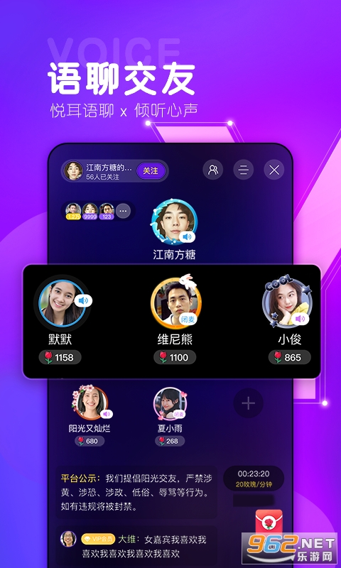 多人交友,支持多人交友的模式,可以允许多人进行视频或者语音和信息聊天。