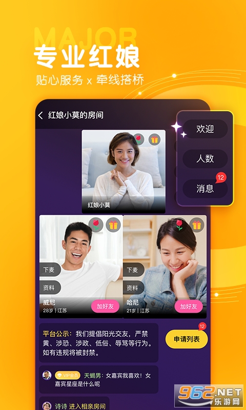 红娘服务,系统上有红娘进行恋爱指导,协助用户的恋爱体验。