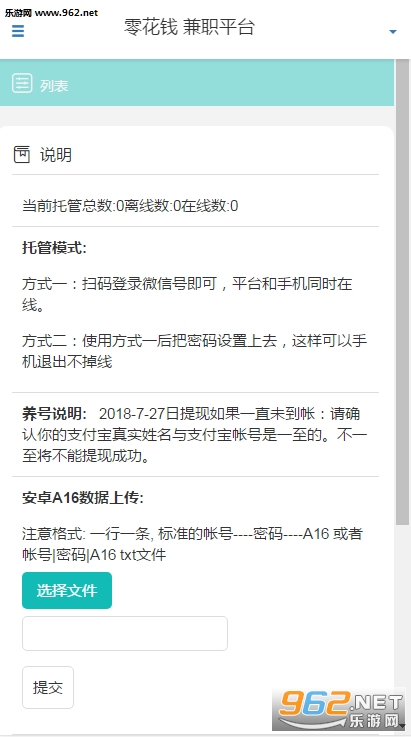 1.【平台业务】本平台是自动兼职任务托管平台,目前只用于浏览,投票,关注任务,所以亲们无需担心安全问题,请放心挂号!