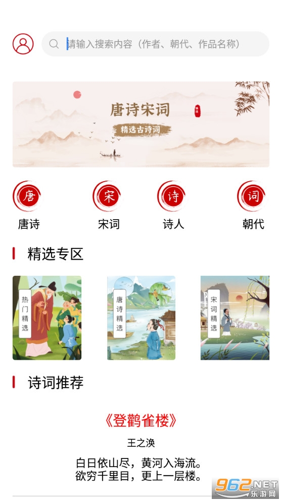 不错的古诗词学习软件,有着丰富的诗词可以在线学习,支持多种搜索方式,可以查看每个诗词的注释、译文和赏析,更好的去了解诗词,喜欢的朋友可以下载试试。