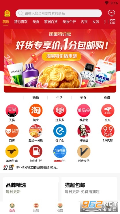一款深受用户们喜爱的电商购物软件,能够满足大家一切购物需求,任何商品在这里都可以找到,每天还会有超多劵可以领取,超多优惠活动等你参加,发货速度也超快,下单当天就能发货,三天之内保证能收到件。