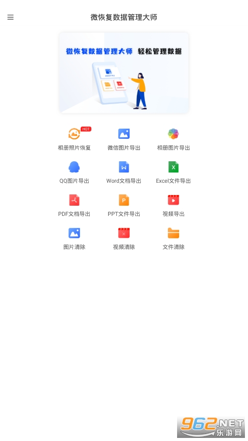 《微恢复数据管理大师app》是一款功能丰富,非常实用的手机工具,功能包括相册照片恢复,图片导出,相册图片导出,QQ图片导出,视频导出,图片清除,视频清除,文件清除,以及各种办公文档导出等等功能,帮助大家更轻松对手机中文件,图片进行管理,需要就下载吧!