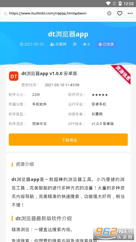 《DT浏览器》是一款非常小巧便捷的浏览器软件,可以做到精准搜索,只需要将网站的链接复制上去就能直接访问,页面刷新出来的速度超快,内置最先进的引擎系统,一些其它浏览器网站无法显示出来的图片视频,在这里都可以显示,并且不会出现拦截情况。