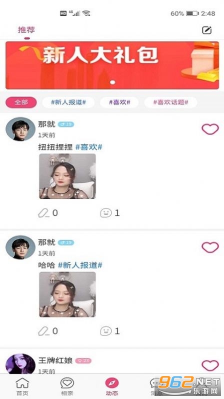 一个非常不错的社交平台,可以快速的帮助大家脱单,这里很多的一些交友信息都是可以查看的,这里主要是为大家提供很多的恋爱指导,可以学习很多的一些说话的方式,这里通过实名认证都是可以的,感情好的话还可以线下互动吃饭看电影!