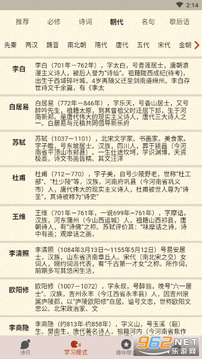 3、配合小学、初中、高中语文教材使用,你可以在背诵诗词时添加收藏。