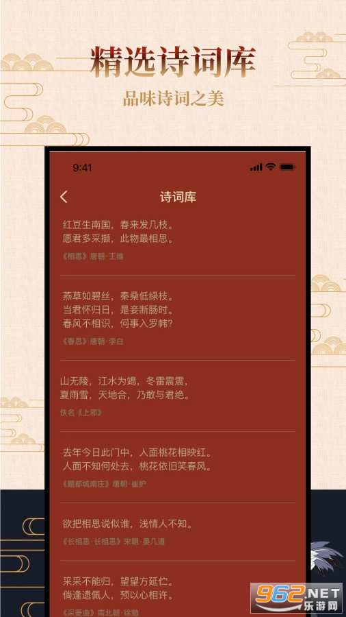 精选中国古诗文经典,赏中华诗词,品生活之美。支持诗词检索,可以更快的找到自己想要的诗句。让照片充满诗情画意,将会持续添加新的诗词名句。