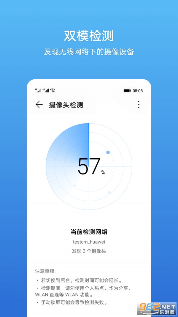 非常好用的一款以查找摄像头为核心的软件,操作方式简单,用户能够通过软件查询你身处的房间是否存在摄像头,保护自己的隐私安全,实用性极强。