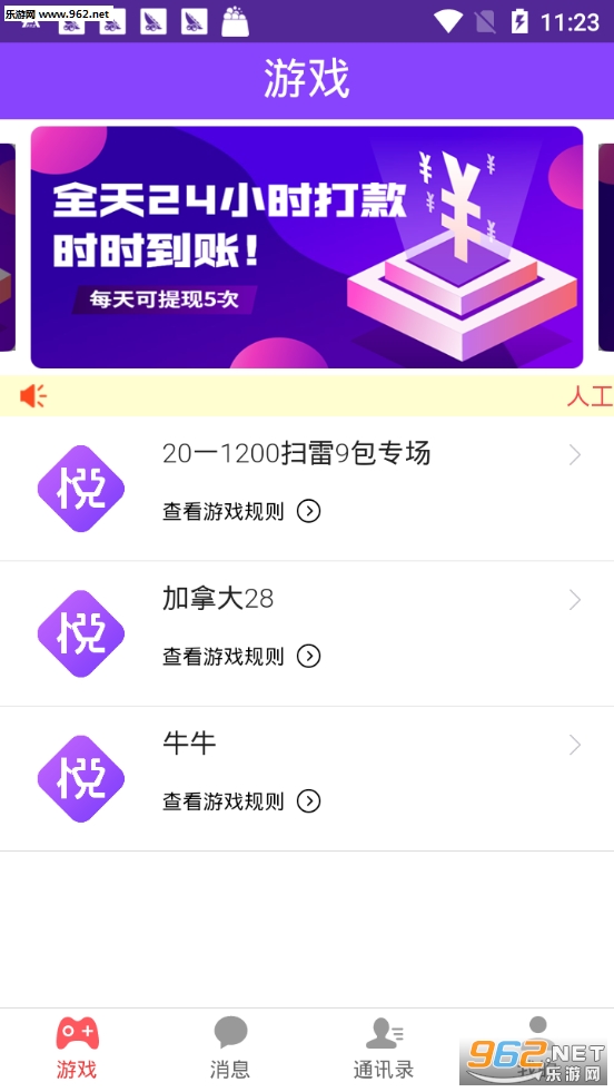 3、不管是扫雷还是牛牛玩法以及一些其他的游戏都是提供的,你可以前来体验一下。