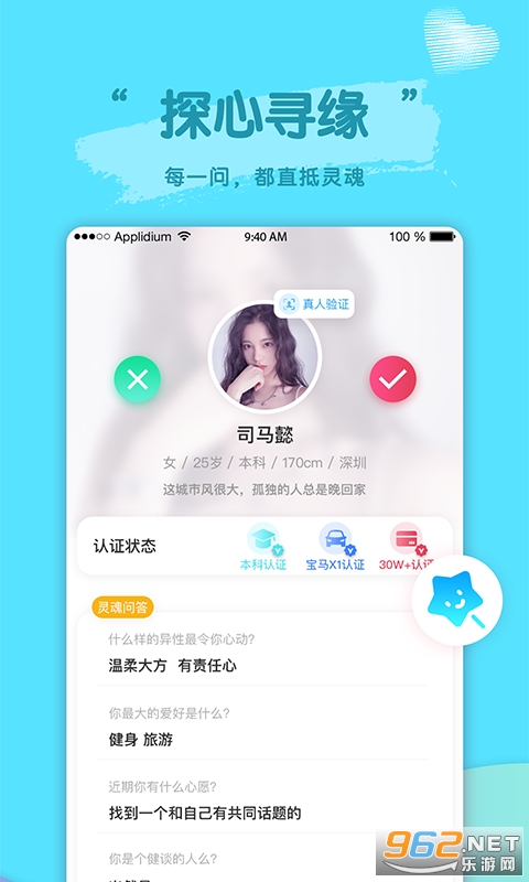 【魅力值】独有的魅力值系统,你可以通过多种方式增加自己的魅力值,魅力值越高,越能匹配到更优质的ta,同时还有更多特权等你来发现。