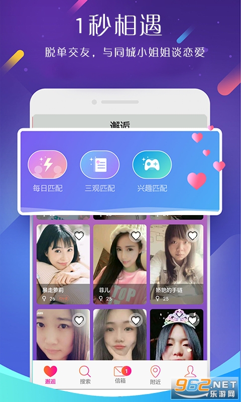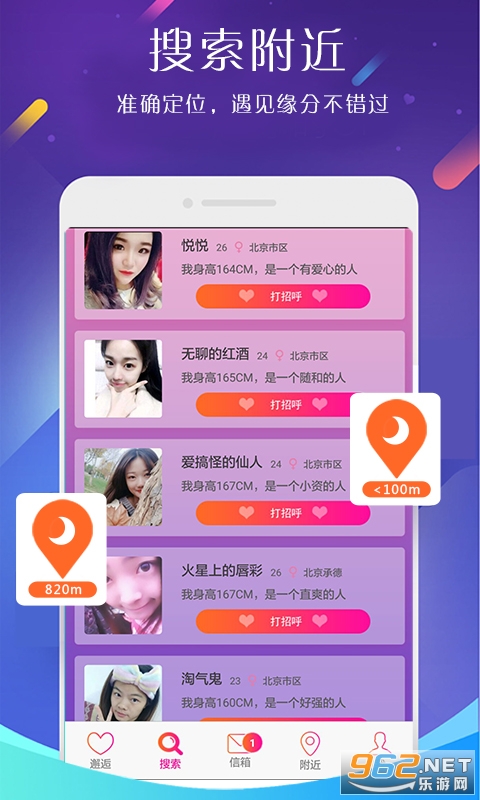找老婆、找对象、寻恋人,一个人生活太孤独,两个人一起才快乐,独自在异乡漂泊,不如找个知心人一起生活,在这里,不怕圈子小朋 友少,不论长相与学历,全民大众交友 、同城相亲、线下约会,真正帮你摆脱单身烦恼! 青春不 再孤单,缘分不再等待,这里为70-90后单身男女 提供新的交友互动平台,寻找你的TA一起来约会。 满足你 在百合、世纪佳缘、遇见、珍爱、找对象、想恋爱、热恋、缘来、求约会、 陌陌 、花田、牵手婚恋的所有需求!
