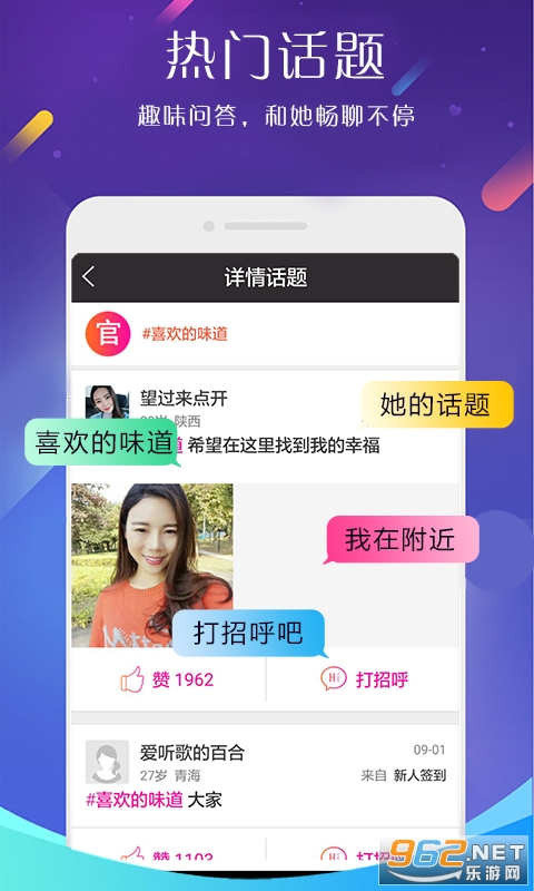 《找老婆app》一款为单身男专女打造的聊天交友平台,把无数人的心灵结合在一起,这里汇聚了高颜值男神女神,更有各类视频达人,多人同城语音连麦畅约男神女神。而且不需要任何费用,感兴趣的小伙伴还在等什么?欢迎来962下载试试吧!