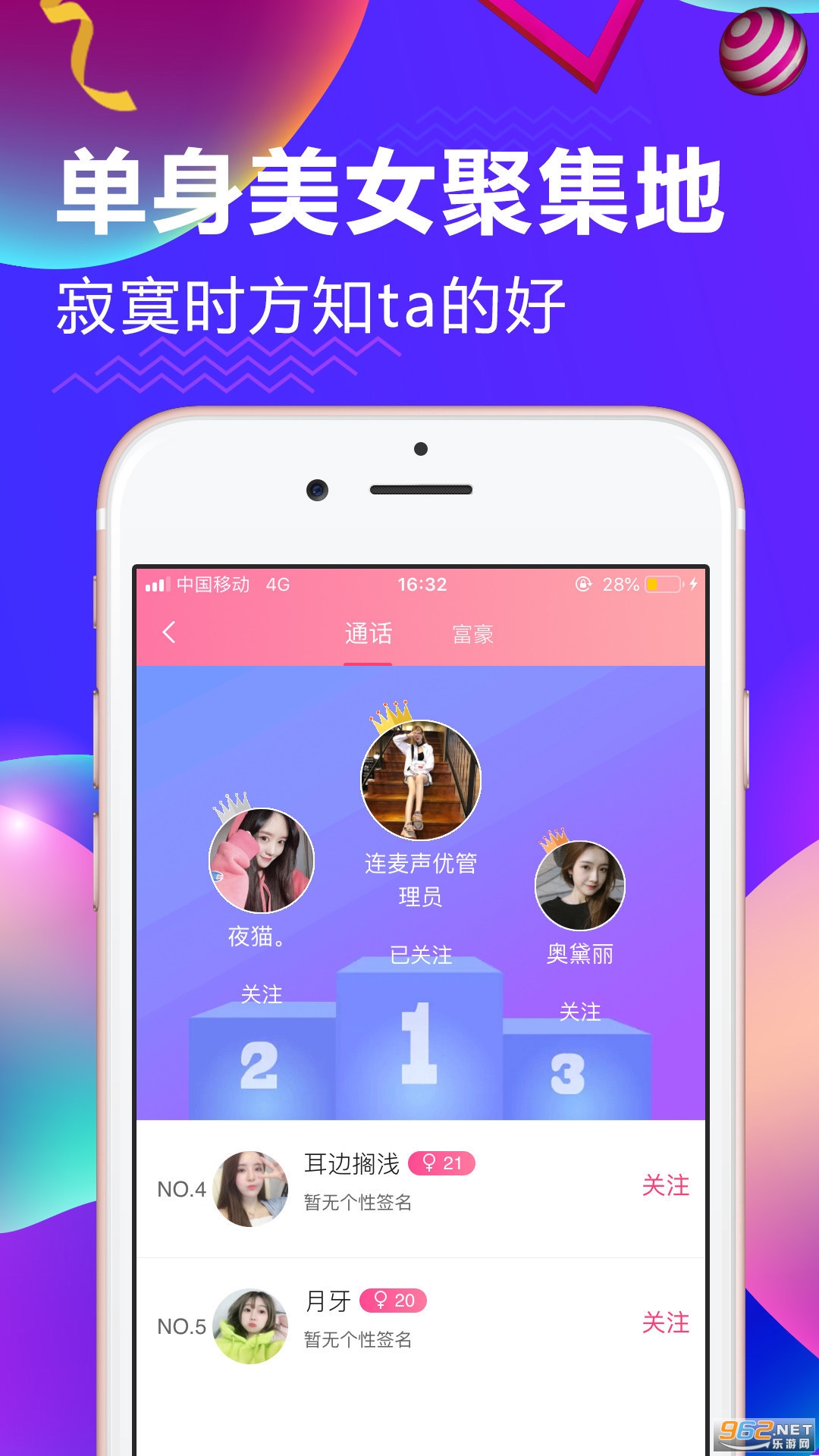 《连麦声优app》是一款非常给力的美女聊天交友平台,这里为用户提供最好最棒的美女聊天功能,丰富而安全的交友资源,让你在这里能找到你心仪的另一半,想脱单的小伙伴千万不要错过哟!感兴趣的朋友还在等什么?欢迎来962下载体验试试吧!