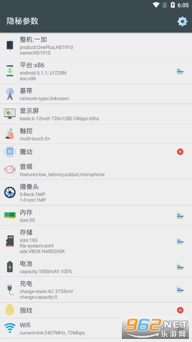 《隐秘参数》是一款手机参数查询工具,大家可能还对自己的手机不是很了解,各项参数值只知道一个大概,这些参数都是一些表面上的参数,那些比较重要的参数有了解多少呢,手机的很多隐性参数是无法在设置中查找的,只能通过一些辅助工具软件查找,但是市面上这类专业的工具少之甚少,现在就把专业的参数查询工具推荐给你们,用得到的朋友可以下载查询一下。