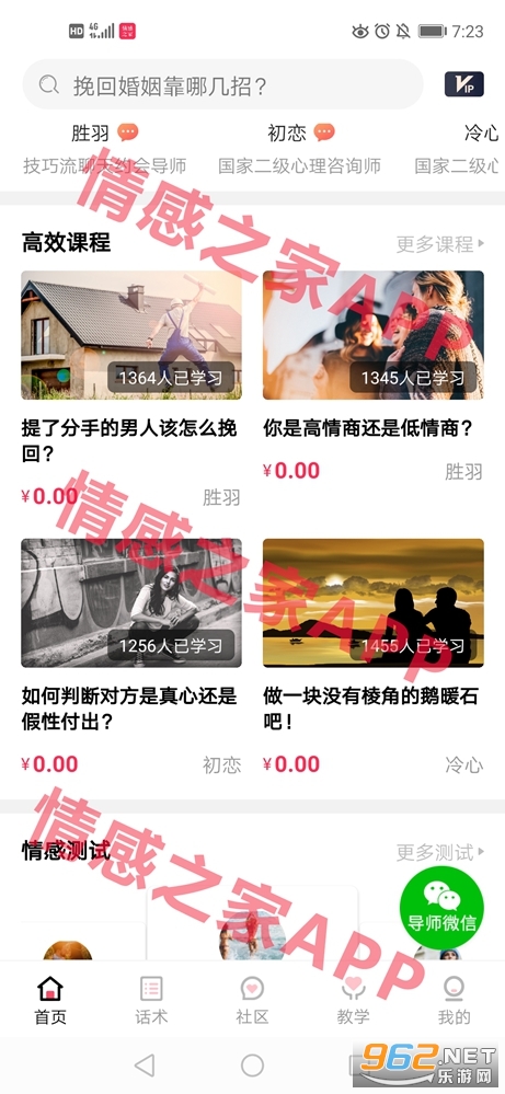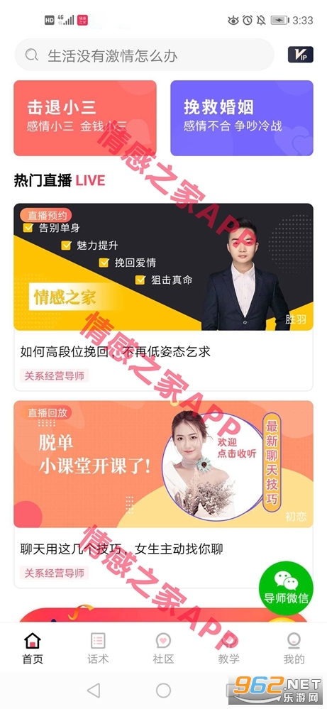 一个具有直播脱单挽回技巧教学、恋爱话术大数据、社区交流、专业导师一对一咨询的情感服务APP。