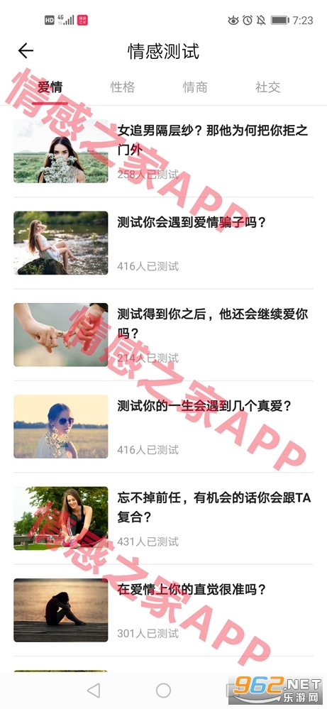 6、情感测试--这里有爱情测试、性格测试、情商测试等各类专业测试,可以帮我们探索一下未知的自己;
