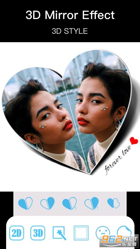 具有2D镜子效果和3D效果(带有爱心和叶子)的最佳镜子效果