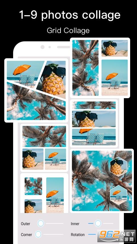 您可以选择网格拼贴和免费拼贴来编辑照片。您可以将1-9张照片合并在一起。用照片镜拼贴您的生活。