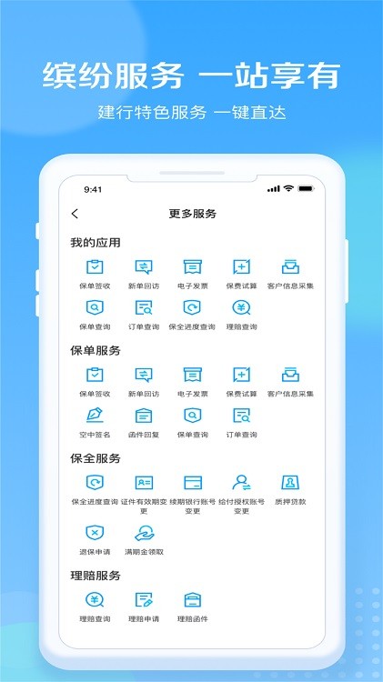 建信人寿保险股份有限公司推出的一款在线办理投保业务、理赔业务、保全业务以及提供各种健康增值服务的App,和建设银行深度融合!建信人寿携手千家万户,守护美好生活!