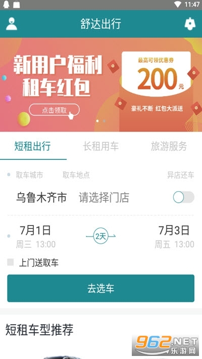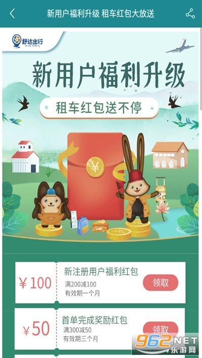新客注册即享200元租车现金券。节假日礼包享不停!