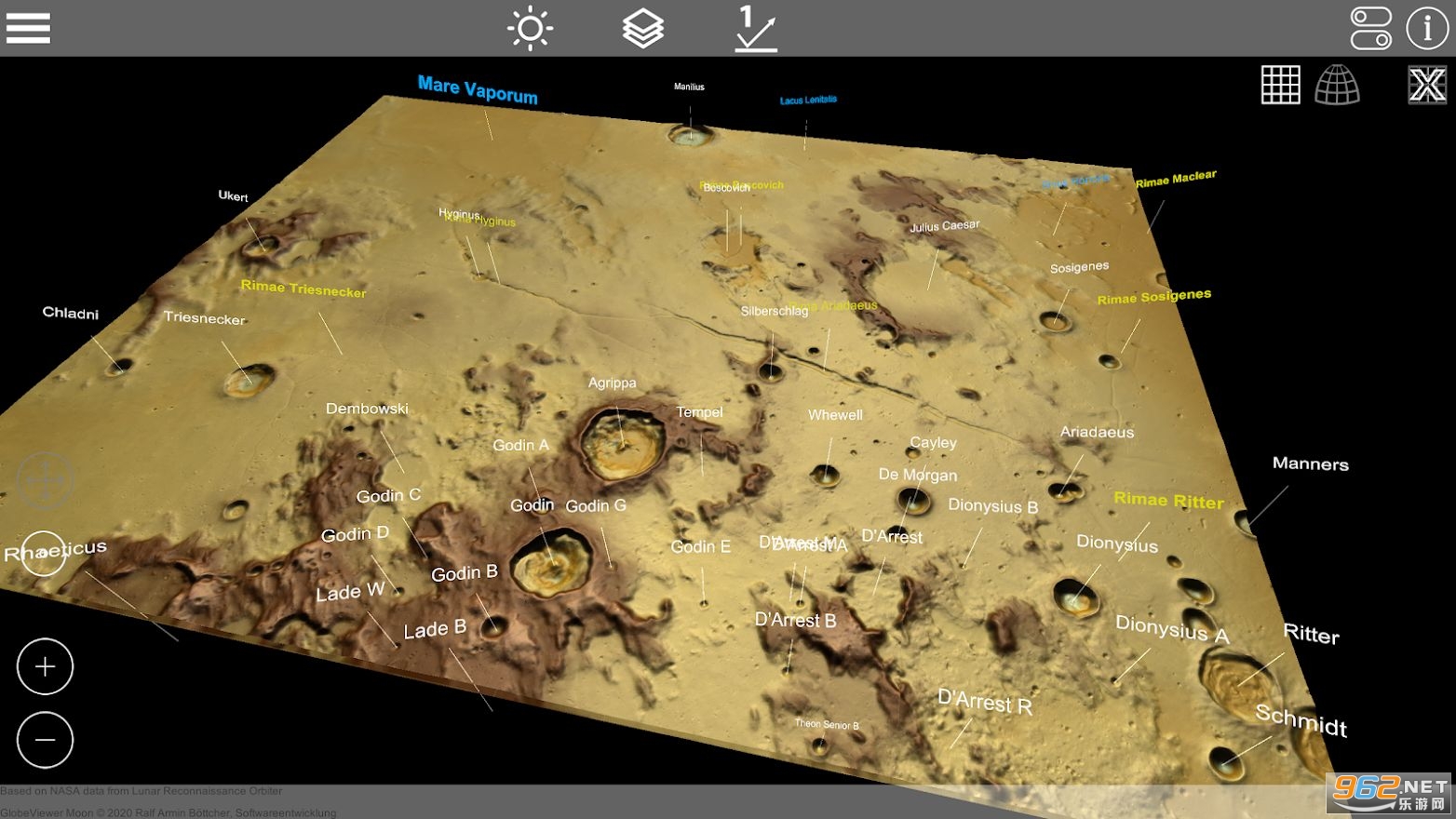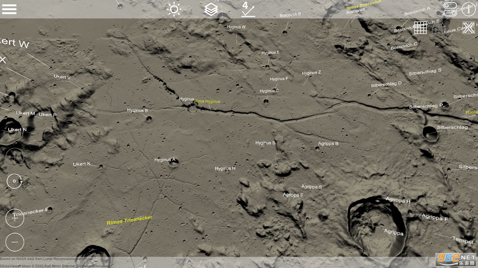 《GlobeViewer Moon月球3D地图》是一款出色的月球3D地图软件,能够查看月球的各个表面,加载局部高清影响,让你观察到月球的凹槽,还可以查看所有的登月任务,喜欢探寻月球之谜的朋友不容错过。