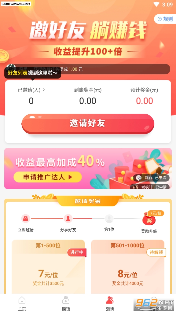 【邀请好友】邀请好友一起赚,收益提升100+倍。