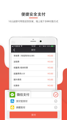 4、便捷安全支付,16元起即可帮您送货到家,线上线下多种付款方式