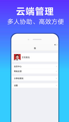 云端协助,支持多位医生同时记录病档和管理患者资料,无论在家里,还是在单位,都可以轻松的实现多人管理。