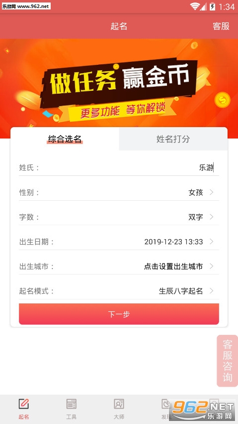 无需注册,输入姓氏生辰八字,轻轻松松起好名!