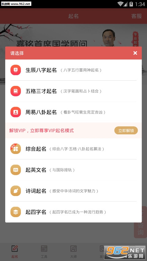 《起名免费版》是一款手机取名软件,软件支持多种取名方式,按照你的喜好要求来取名,多种筛选机制,多种排列组合,为你提供超级丰富的选择,更有大师在线为你取名,测试名字,让你拥有一个好名字。