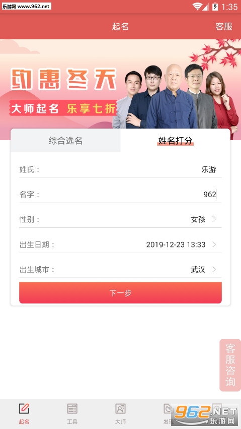 2.综合起名—独创的综合了八字、周易、五格起名分数,为你呈现全吉名字,全方位满足你的起名取名需求。