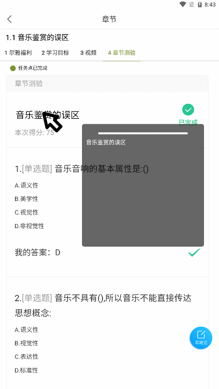 2、打开【超星尔雅/学习通】或【智慧树/知道】软件,移动小箭头到题目即可