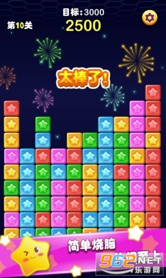 2、同一时间消除最多的星星,几十万分比较容易完成。