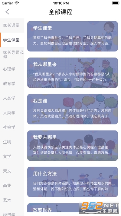 《橙长树》是一款家庭教育开放性平台,家长课堂帮助孩子了解未来社会的科学认知,学生课堂帮助孩子扩充视野,有喜欢的来下载吧。