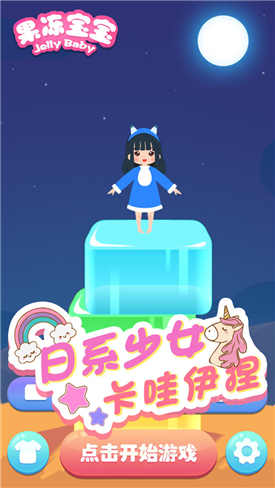 1.画面设计非常小,很清新,果冻娃娃的设计特别可爱,跳跃的动作,语言,音效都特别搞笑。
