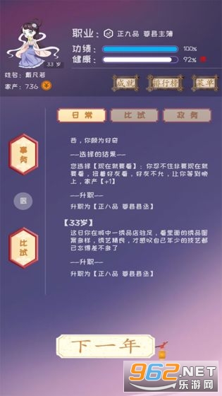 1.丰富的知识题库,每天选择不同类型的题进行作答。种类丰富的职业系统。强大的随机事件系统。