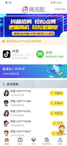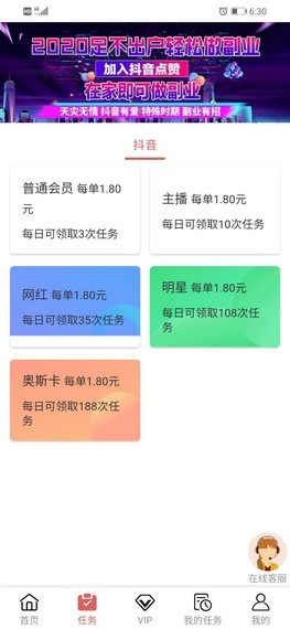 3、全新上线的手机端点赞应用,用户在这里通过完成抖关注平台的任务就可以轻松的在线接单了。