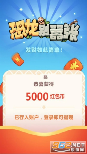 《恐龙别嚣张》是可以提现的哦,直接下载游戏进入之后就可以获得红包币,红包币是可以直接来兑换成现金红包的,然后直接就可以提现了。