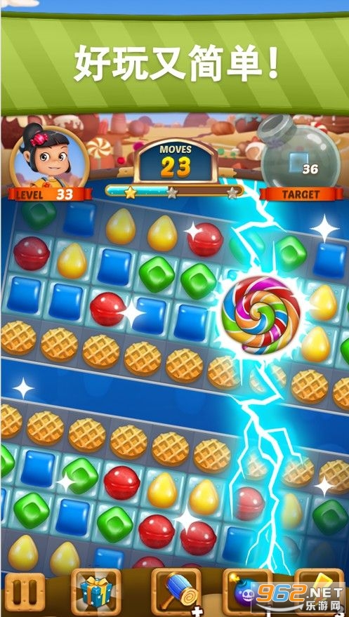为了击败邪恶的女巫,糖果王国各种神奇的美食都来帮忙!有藏在水晶糖下的小象软糖,有碰到就会爆炸的猫爪棉花糖,更有释放魔力糖果的超级漩涡。他们都来帮忙,一定要赶走破坏糖果的女巫!