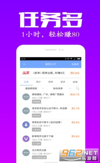 可筛选:最新悬赏、审核快、赚钱多、通过率高,选你所想。