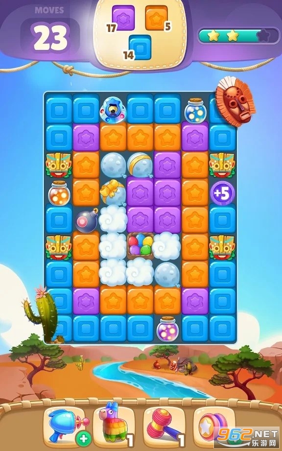 粉碎5个或更多的立方体来产生魔法的炸弹将帮助您轻松地通过关卡完成考验