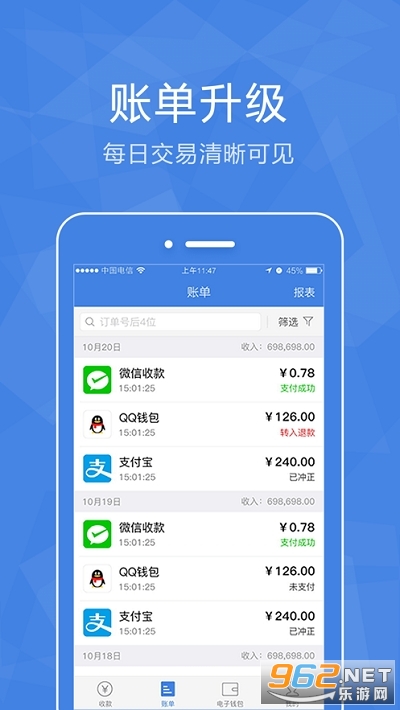 1、“T+0”实时到账。商户使用“乐收银”,可以做到实时收款、实时到账、实时可用,从而提高资金利用效率;