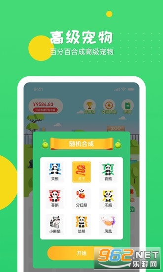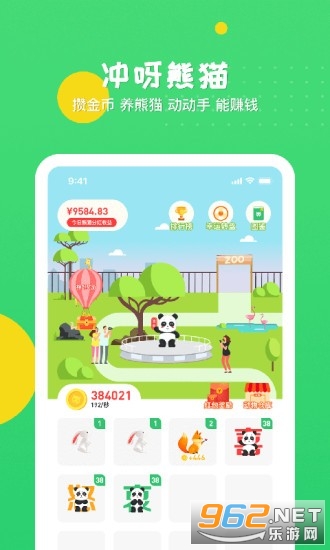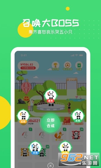 合成熊猫来赚钱的一款网赚休闲小游戏,玩家在游戏中养成各种不同特色的熊猫,完成日常的任务就能够赚取丰厚的红包现金奖励哦!