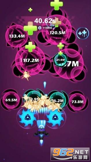 3、驾驶着炫酷的飞机在宇宙冒险,合理的搭配增强战斗力,远程射击赢得头菜。