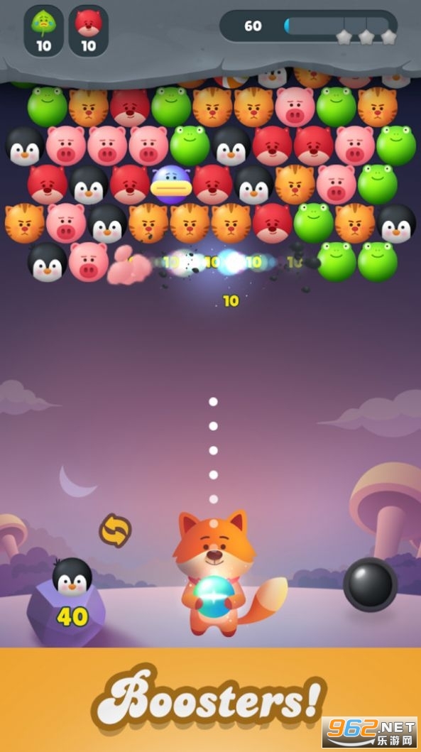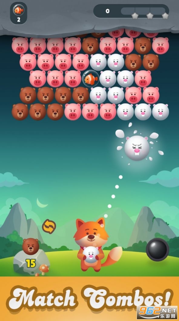2、学会使用下面的泡泡机进行瞄准发射,消除可爱的动物泡泡;