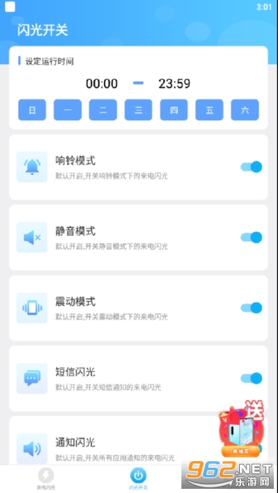 开启来电闪光灯功能,让手机变成led闪烁灯。