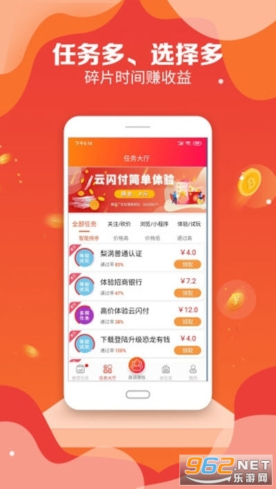 《勾转app》是一款非常给力的手机做任务赚钱平台,这款软件的操作和玩法都非常简单,只需要按照要求完成规定的任务即可,福利好,收益高,感兴趣的朋友欢迎来962下载吧!