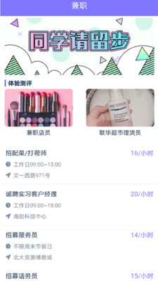 1.兼职职位丰富,种类繁多,无论是在线兼职,还是可以选择发送传单,问卷,销售,助理等职位;