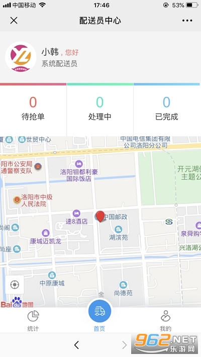 智慧骑手app旨在帮助配送员更高效、便捷的为外卖商家及顾客提供配送服务,涵盖接收配送订单、管理订单信息、查看统计数据等核心功能。主页面分为待抢单、处理中、已完成三个进度界面。统计功能会根据用户下达不同类型的订单区分为精品外卖订单、帮我买订单、帮我送订单。