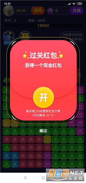 1、玩游戏消星星通关就有红包奖励,每天可领36个红包,预计能赚20元左右